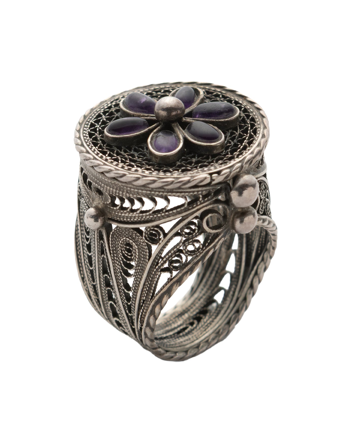 Purple Flower-Patterned Agate Filigree Ring - 2100 7095