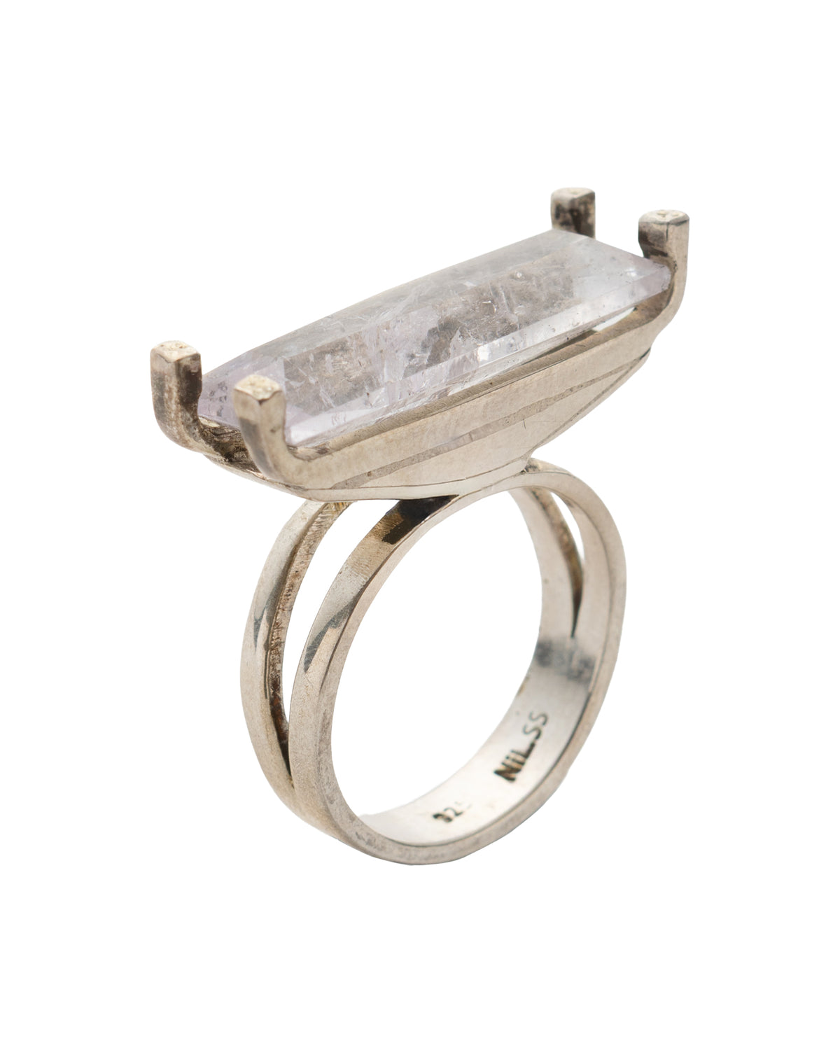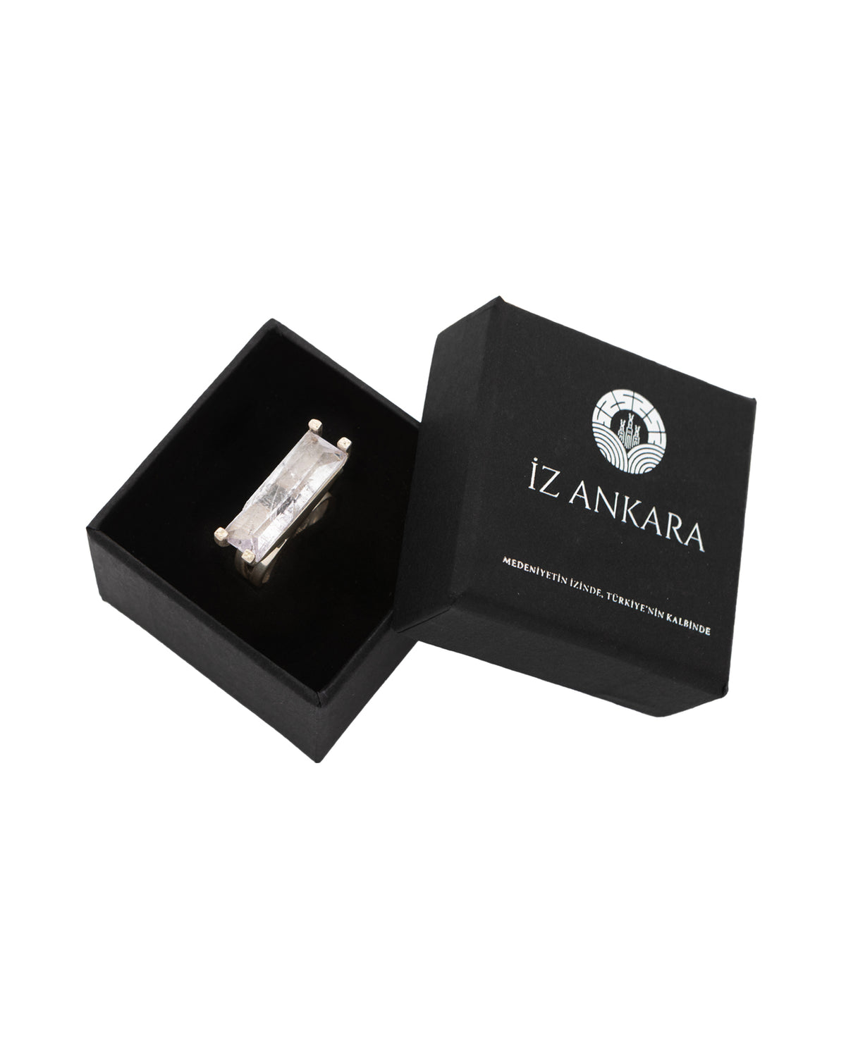 Transparent Rectangular Gondola Stone Silver Ring - 2101 1030