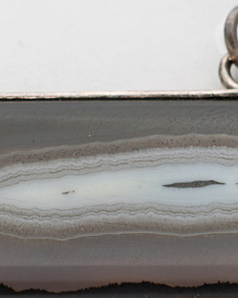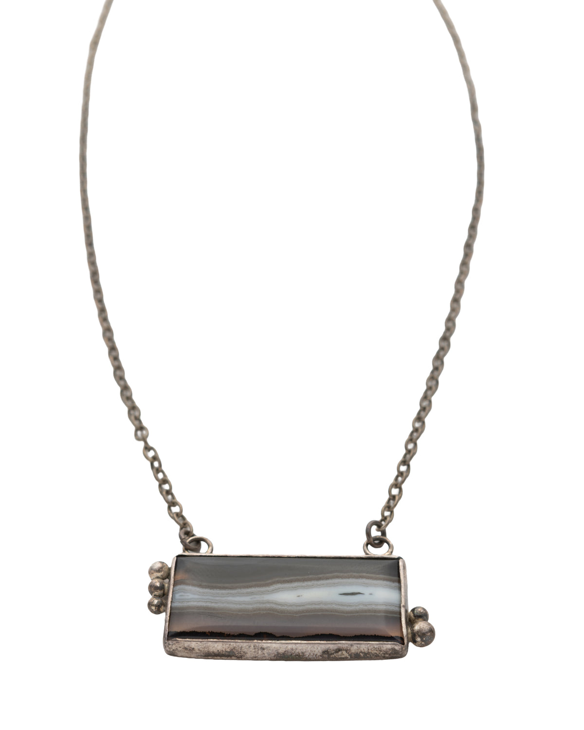 White-Brown Striped Rectangular Agate Necklace - 2100 7552