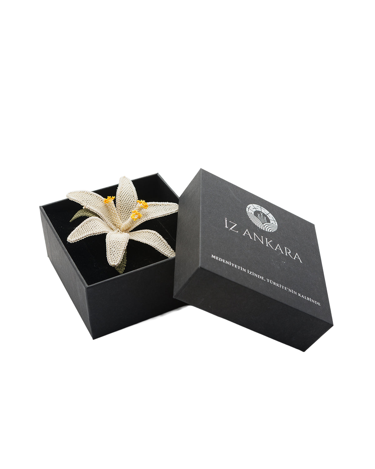 Yellow Lily Motif Needle Lace Brooch - Nallıhan Handcrafted Lace