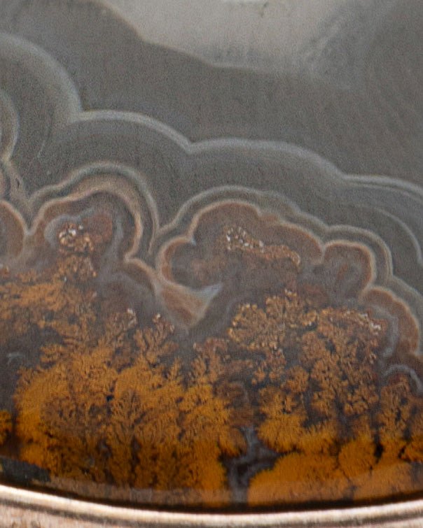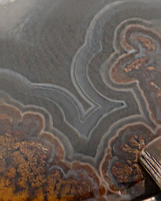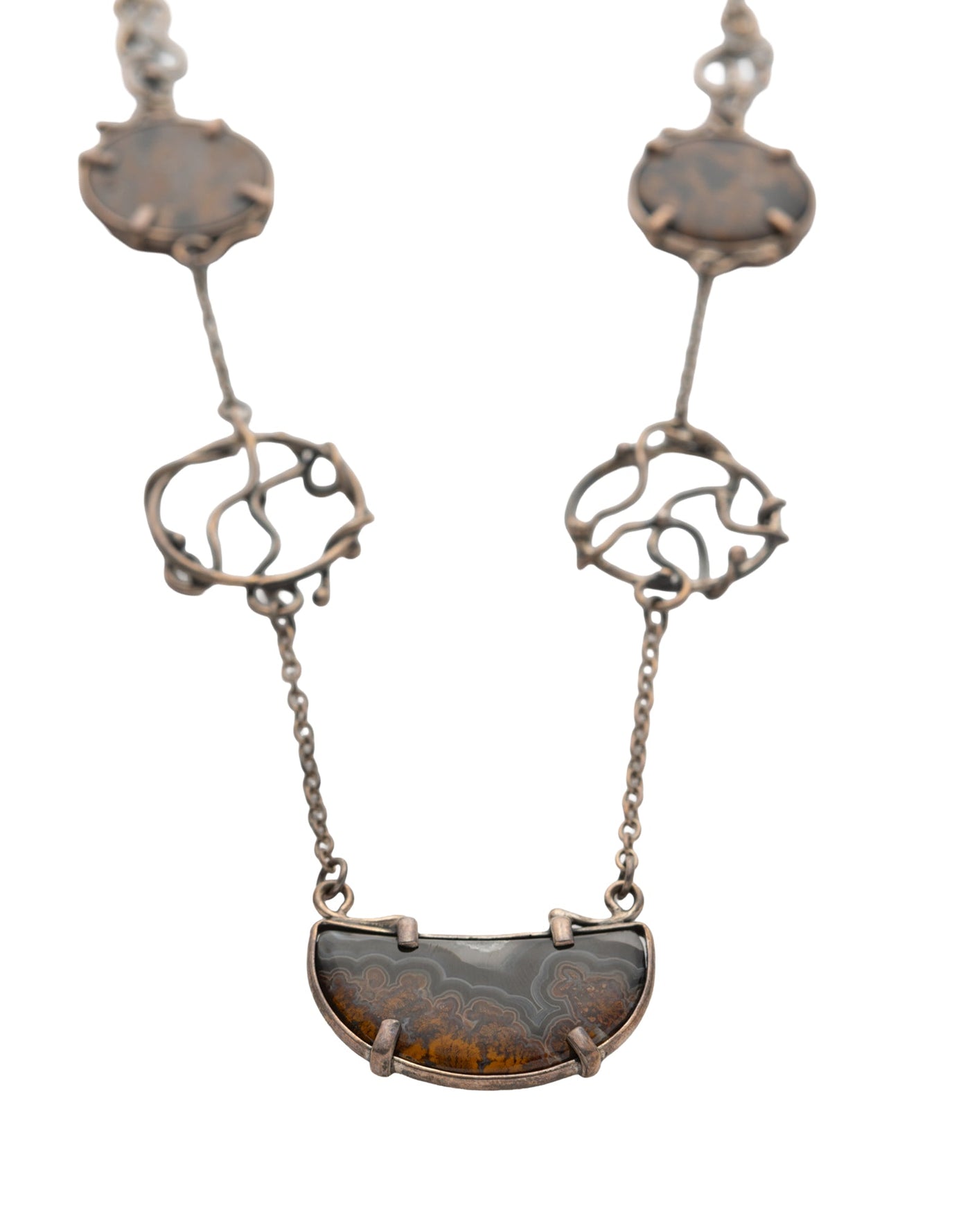 Kahverengi-Gri Hilal ve Yuvarlak Agat Taşlı Gümüş Kolye - 2101 7538