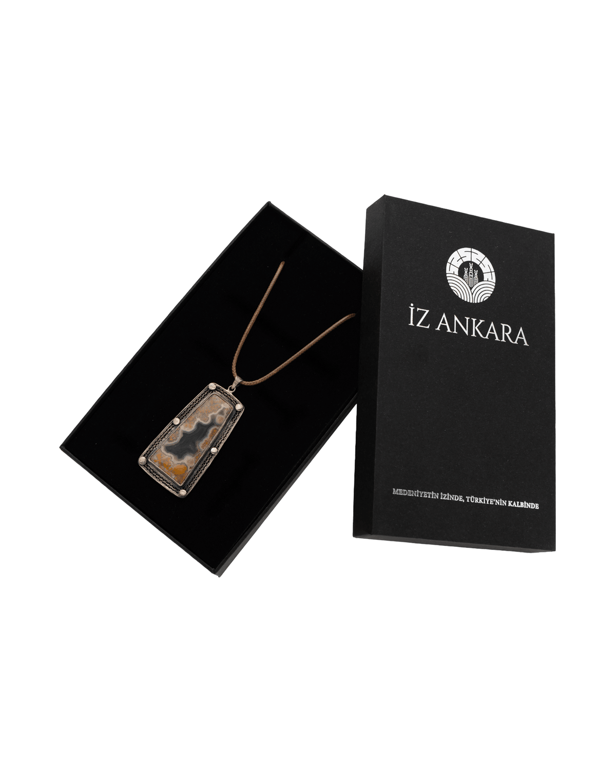 Çubuk Agat Taşı Detaylı El Yapımı Gümüş Kolye