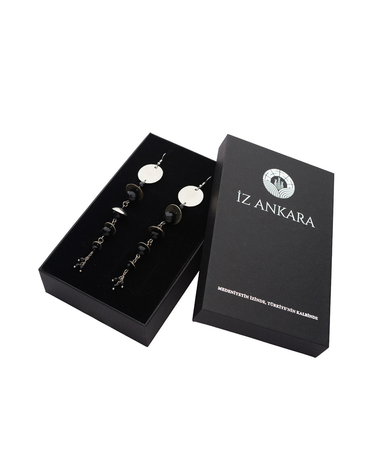 Siyah Kristal Taş Sallantılı Küpe