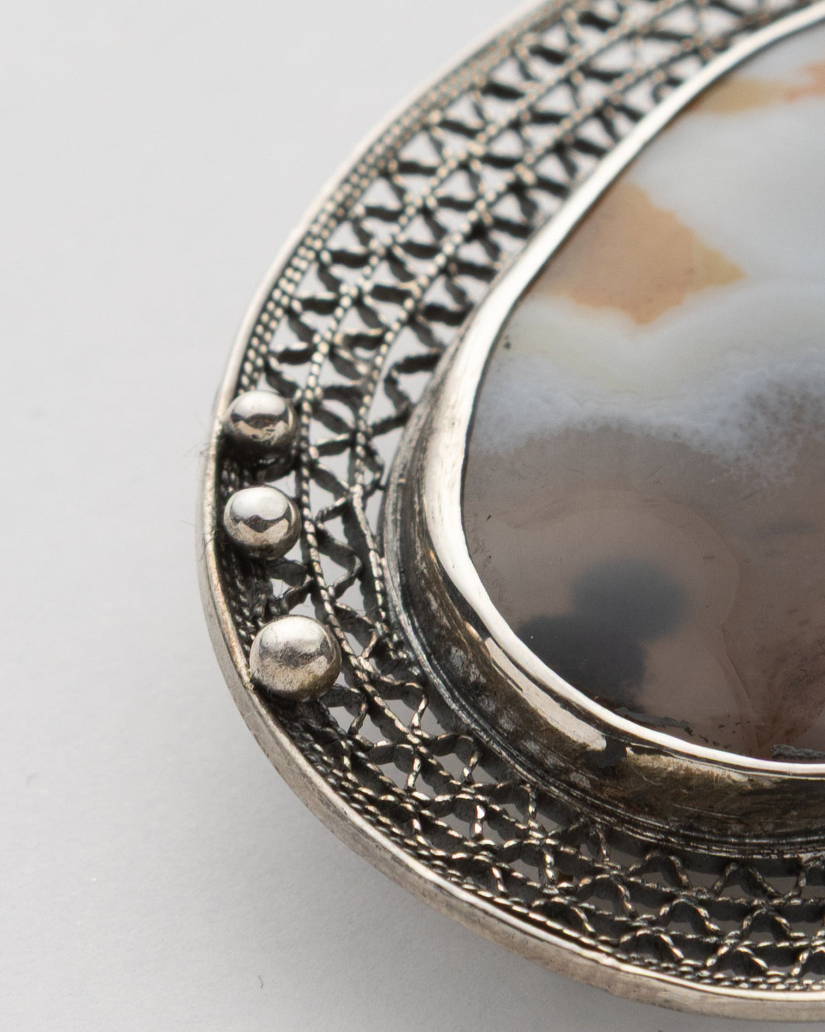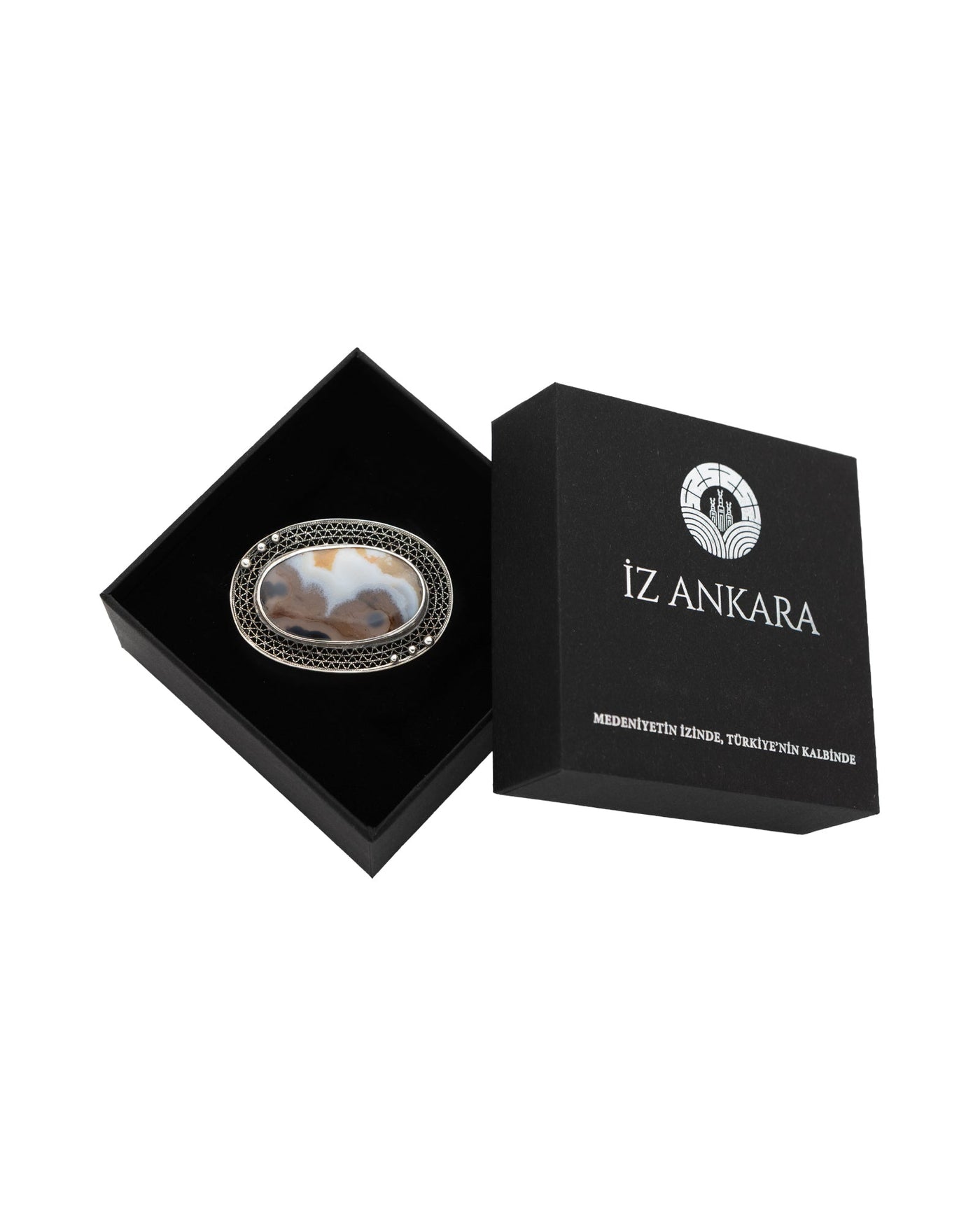 Sarı-Beyaz Oval Agat Taşlı Gümüş Broş - 2101 3041